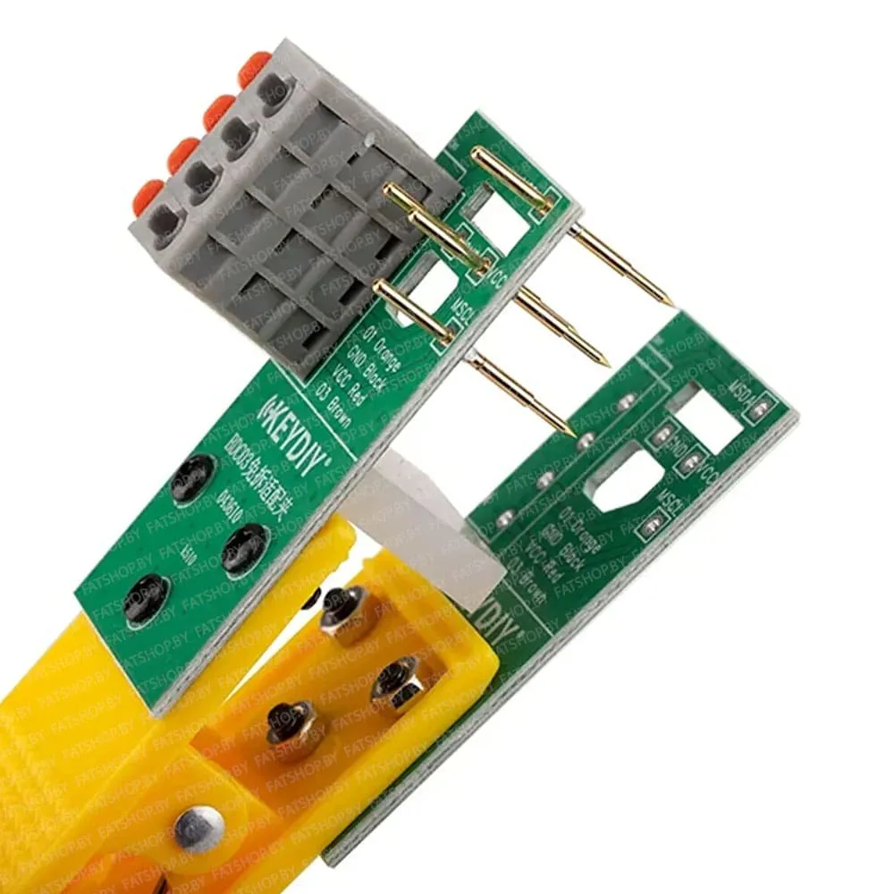 - Для ключей BMW серии U (модель KD FGB57): Конструкция адаптера предусматривает подключение через пайку, обеспечивая максимально стабильную передачу данных для этого типа чипов.