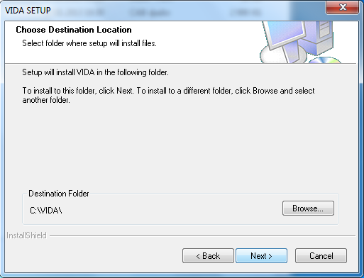 Запускаем файл /VIDA201x/Install/DVD/Vida_dvdheader/Main/Setup.exe (для Win7 от имени администратора). Выберите установку VIDA All-in-one