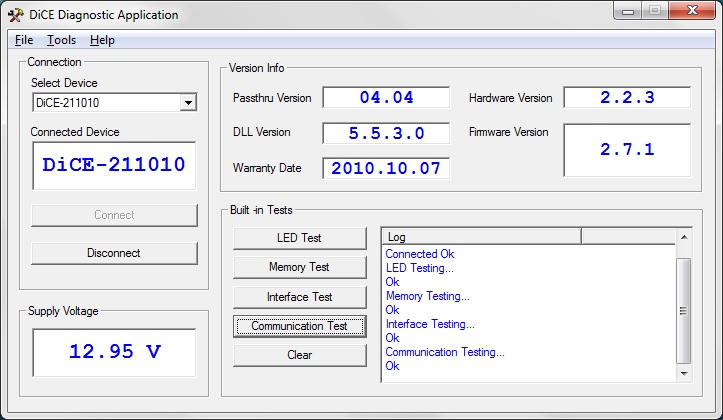 2. После установки драйвера подключаем прибор Dice к USB порту компьютера (к автомобилю не нужно) и запускаем утилиту DiCE Diagnostic с рабочего стола.