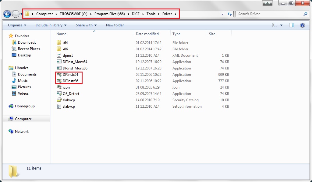 1. Установка специфического драйвера. Идем по пути С:/ Program files/Dice/Tolls/Driver