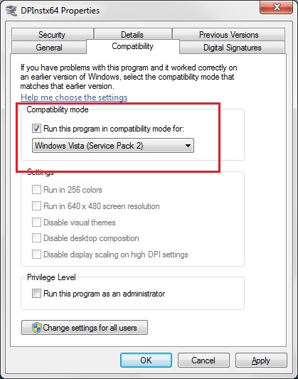 ВАЖНО: Для систем Windows 7 необходимо запускать в режиме совместимости с Windows Vista SP2, а также от имени администратора.