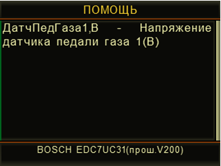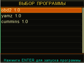 - Выбор диагностической программы и диагностируемого двигателя/системы. При выборе диагностируемого двигателя/системы по нажатию функциональной кнопки F2 на дисплее прибора отобразится справка по особенностям диагностики и подключения.