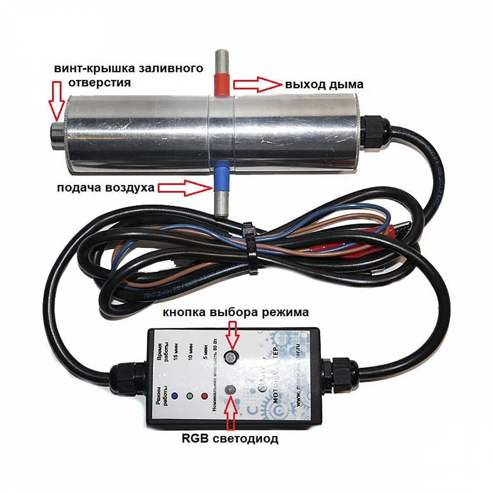 - резиновые шланги (2 шт по 20 см) для подключения к штуцерам подачи воздуха и выхода дыма
