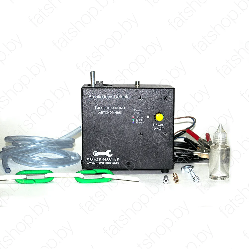 Дымогенератор ГД-А предназначен для выявления утечек, подсосов, проверки герметичности в замкнутых системах авто (впуска/выпуска воздуха, охлаждения, кондиционирования, фарах и шинах, и в множестве других). Проверка осуществляется при помощи подачи белого густого дыма под небольшим давлением (0,5-0,7 бар) в предположительное место утечки с целью визуального обнаружения места его выхода.