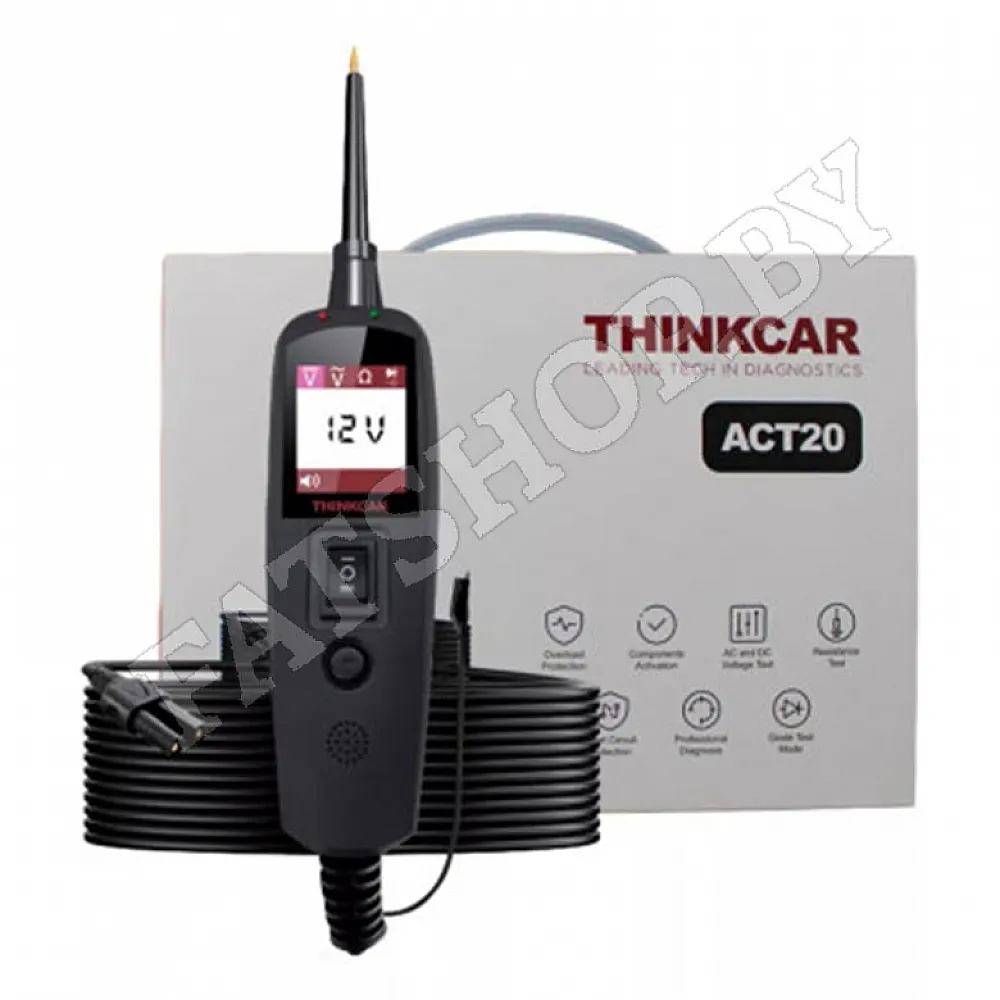 Thinkcar ACT20 – это универсальный автомобильный тестер, предназначенный для диагностики и устранения неисправностей в электрической системе автомобиля. Этот компактный и надежный прибор оснащен цветным дисплеем, который позволяет легко считывать данные о напряжении, токе и сопротивлении. Thinkcar ACT20 способен измерять постоянное и переменное напряжение до 65В, ток до 10А и сопротивление до 200 кОм.