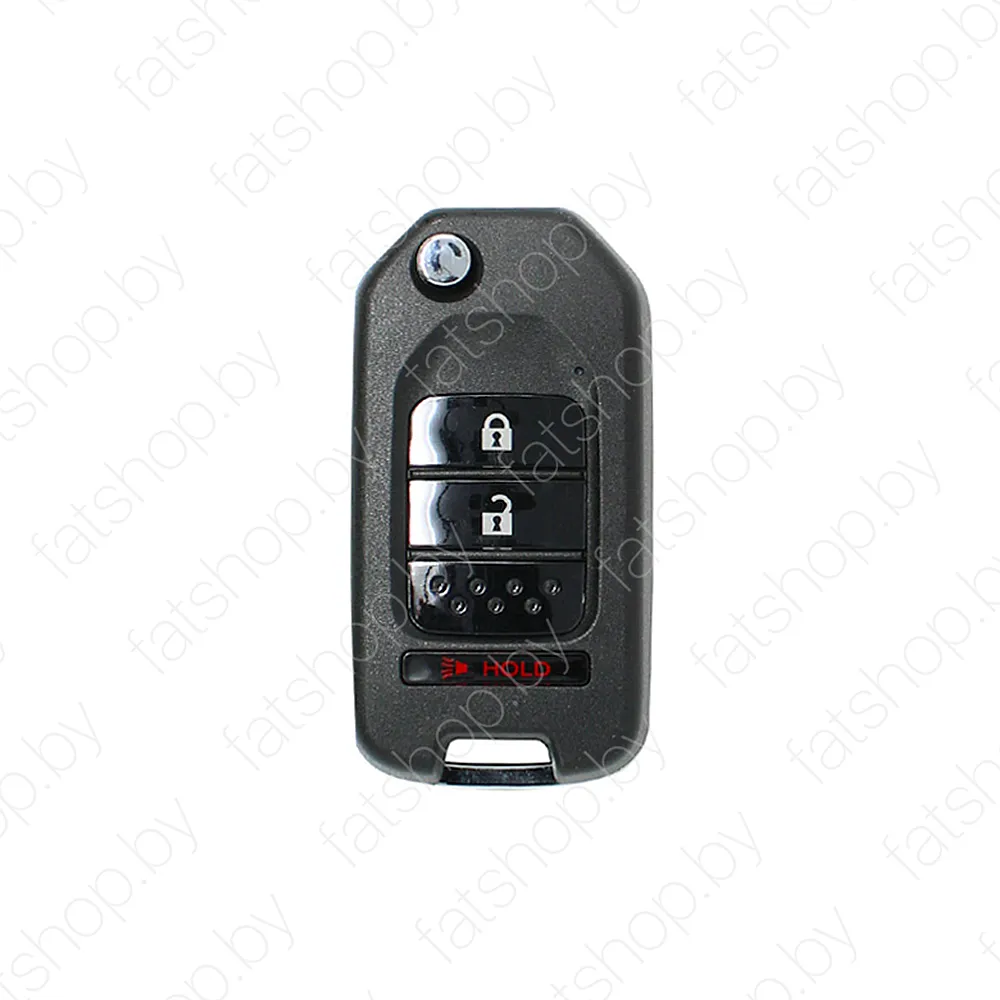Корпус универсального ключа (брелока) Xhorse XKHO02EN выполнен в стиле Honda на 2 кнопки и кнопка тревога. Для программирования потребуется специальный кабель (wire remote).
