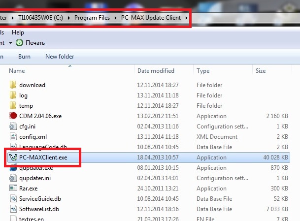 - содержимое архива разархивируем в c:\program files (ТОЛЬКО СЮДА!!! ОЧЕНЬ ВАЖНО). Получаем две папки PC-MAX и PC-MAX Update Client