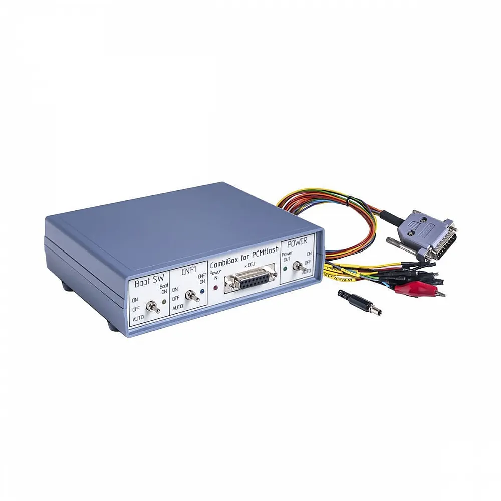 CombiBox предназначен для подключения блока управления к загрузчику PCMflash и адаптеру J2534 «на столе» и коммутации напряжений питания и формирования сигналов BOOT, CNF1. При использовании с адаптером Scanmatik 2 (PRO) прибор позволяет формировать сигналы GPT1, GPT2 необходимые для работы с модулями 53 и 71, а также с перспективными модулями.
