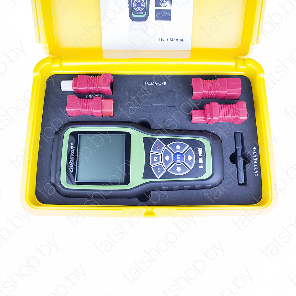 OBDstar X100 PROs (C+D+E) - обновленная версия предшественник x 100 pro. В "рестайлинге" не много изменений. Но есть такие, как: в комплекте теперь идет EEPROM адаптер, усовершенствованный корпус (изменился материал корпуса и повысилась защита кнопок от проникновения влаги и пыли), более простое извлечение карты памяти, увеличена скорость работа, обновлена схемотехника.
