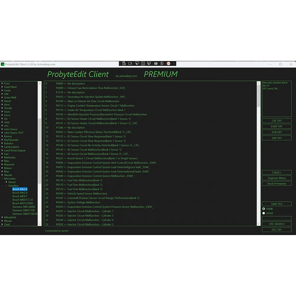 Probyte Edit Dodge Diesel Bosch EDC17C79 EGR DPF SCR FLAPS DTC OFF — это лицензия на программное обеспечение для настройки и диагностики дизельных двигателей Dodge с системой управления Bosch EDC17C79. Программа позволяет работать с системами EGR, DPF, SCR, FLAPS, а также отключать коды неисправностей (DTC). Подходит для профессионального использования в автосервисах и мастерских.