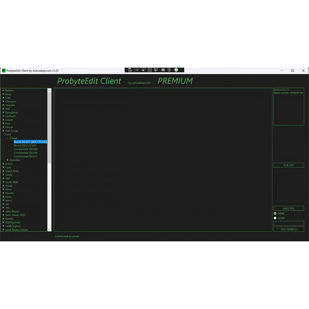 Probyte Edit FORD BOSCH DCU17 (EDC17CP43) SCR OFF — это лицензия для программного обеспечения, которая позволяет работать с блоками управления двигателем (ECU) автомобилей Ford с системой Bosch DCU17 (EDC17CP43). Продукт предназначен для отключения системы SCR (Selective Catalytic Reduction), что может быть полезно при ремонте или настройке двигателя. Подходит для профессиональных автомехаников и сервисных центров.