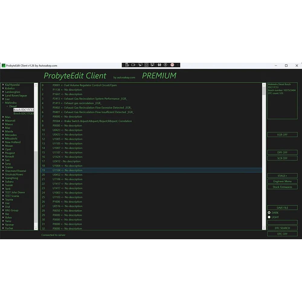Лицензия Probyte Edit для Mahindra Diesel Bosch EDC17C53: решение проблем EGR, DPF и DTC OFF