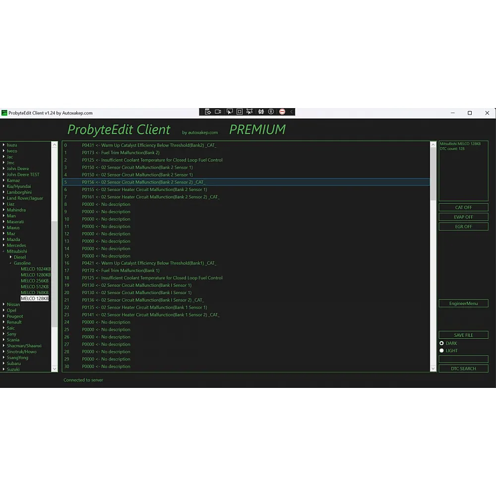 Лицензия Probyte Edit Mitsubishi MELCO: работа с 128 KB CAT, EVAP, EGR, DTC OFF