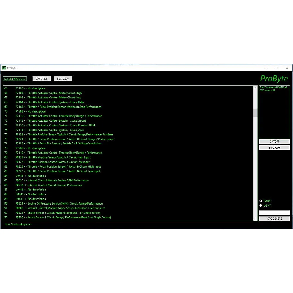 Лицензия Probyte Edit Module FULL для Ford Continental EMS2204: CAT, EVAP, DTC off