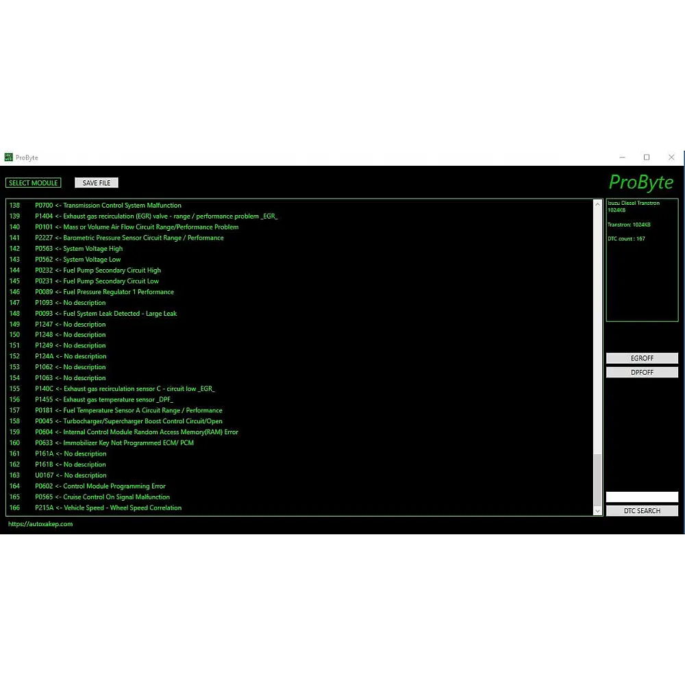 Лицензия Probyte Edit Module FULL для Isuzu Diesel: Transtron 1024 kb, EGR, DPF, DTC OFF