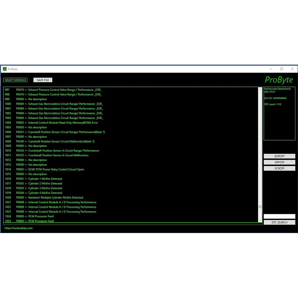 Лицензия Probyte Edit Module FULL для Kia и Hyundai: решение для дизельных Bosch EDC17C57 с поддержкой SRC, EVAP, EGR, DPF, DTC и SL off