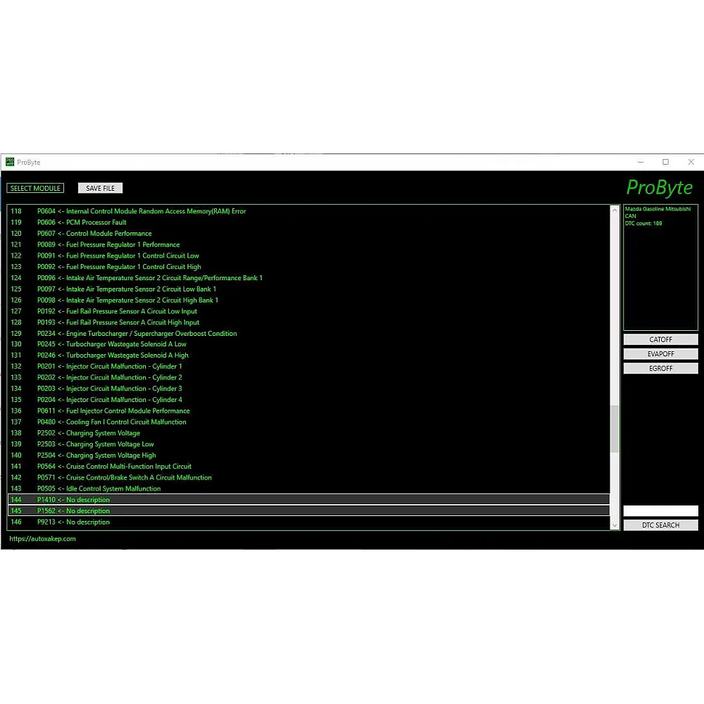 Лицензия Probyte Edit Module FULL для Mazda, Mitsubishi: работа с CAN, CAT, EVAP, EGR, отключение DTC