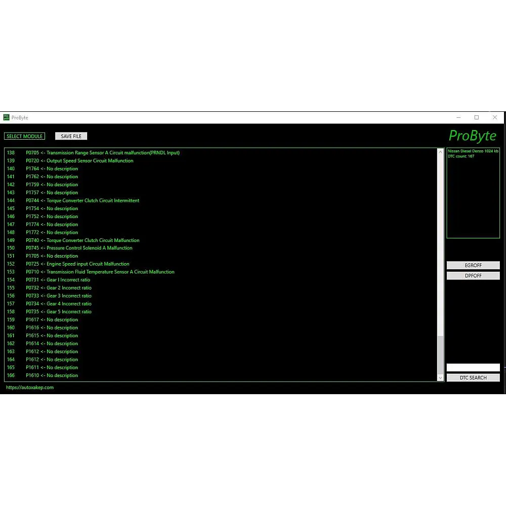 Probyte Edit Module FULL Nissan/Infinite Diesel Denso 1024 kb EGR DPF DTC off — это программное решение для автомобилей Nissan и Infinite с дизельными двигателями Denso. Модуль позволяет проводить настройку и диагностику электронных систем автомобиля, а также отключать функции EGR (рециркуляция выхлопных газов), DPF (сажевый фильтр) и DTC (система контроля тяги). Подходит для работы с блоками управления объёмом 1024 килобайт. Продукт предназначен для профессионального использования в автосервисах и мастерских.