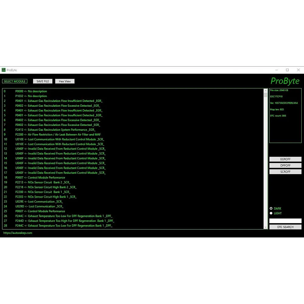 Лицензия Probyte Edit Module для Mercedes TDI EDC17CP10: отключение DTC