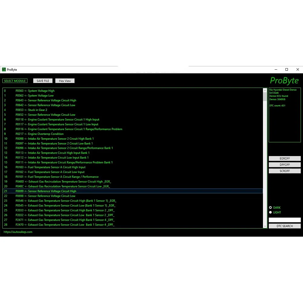 Probyte Edit Module Probute FULL Kia Hyundai Diesel Denso Sh72546 EGR DPF SCR DTC off — это программное решение для автомобилей Kia и Hyundai с дизельными двигателями. Оно предназначено для управления системами EGR, DPF, SCR и отключения DTC. Подходит для широкого спектра моделей и обеспечивает эффективное управление экологическими системами, что способствует улучшению производительности и снижению расхода топлива. Лицензия предоставляет доступ к полному функционалу программы и позволяет адаптировать настройки под индивидуальные требования владельца автомобиля.