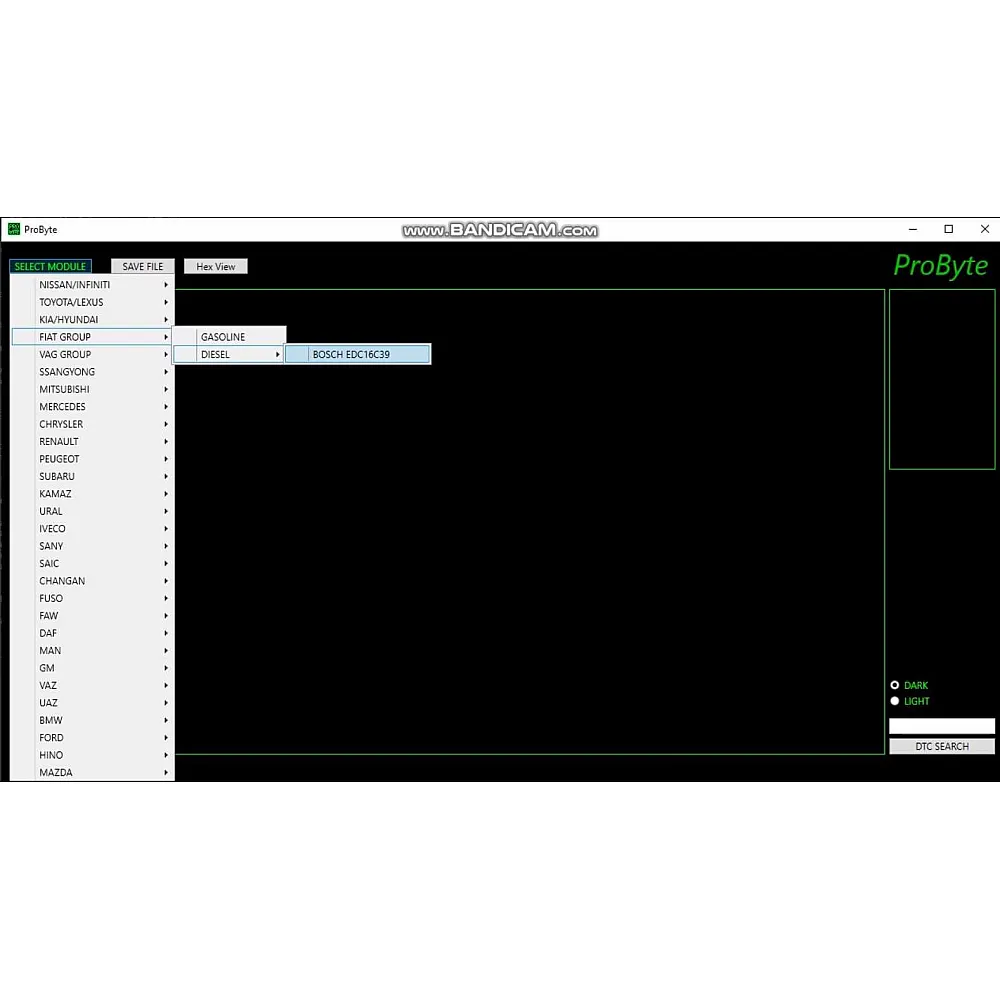 Лицензия ProByte Edit Module для автомобилей Fiat Group Diesel с Bosch EDC16C39: отключение EGR, DPF, DTC