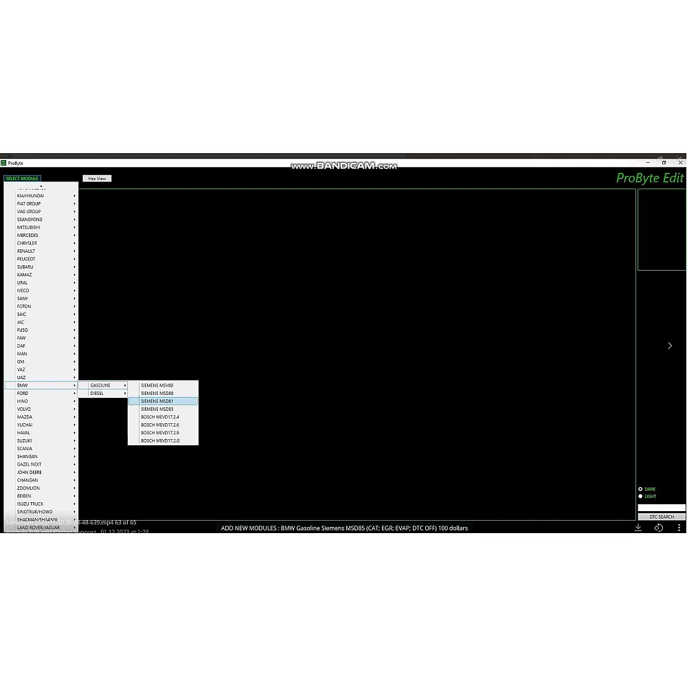 Probyte Edit Module ProByte FULL BMW Gasoline Siemens MSD85 CAT EGR EVAP DTC off — это программное решение для обслуживания и диагностики бензиновых автомобилей BMW с системами Siemens MSD85. Модуль позволяет проводить комплексную диагностику, а также имеет функции отключения систем CAT, EGR и EVAP, сброса DTC. Подходит для профессионального использования в автосервисах и мастерских, специализирующихся на ремонте BMW.