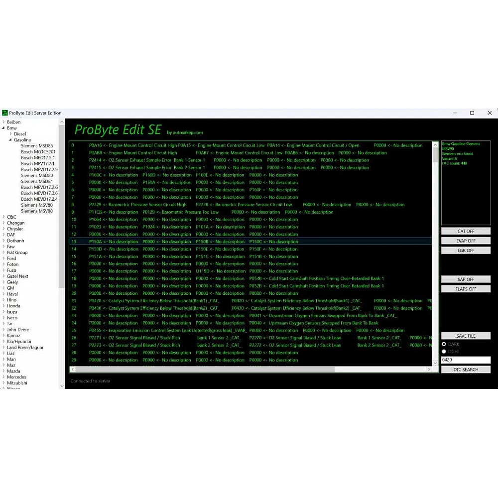 ProByte Edit Module ProByte FULL — это программное решение для работы с автомобилями BMW с бензиновыми двигателями, управляемыми системой Siemens MSV90. Модуль позволяет проводить сложные диагностические и программные работы, включая настройку и отключение систем EGR, EVAP, а также удаление DTC-кодов. Подходит для профессионалов в области автодиагностики и ремонта.