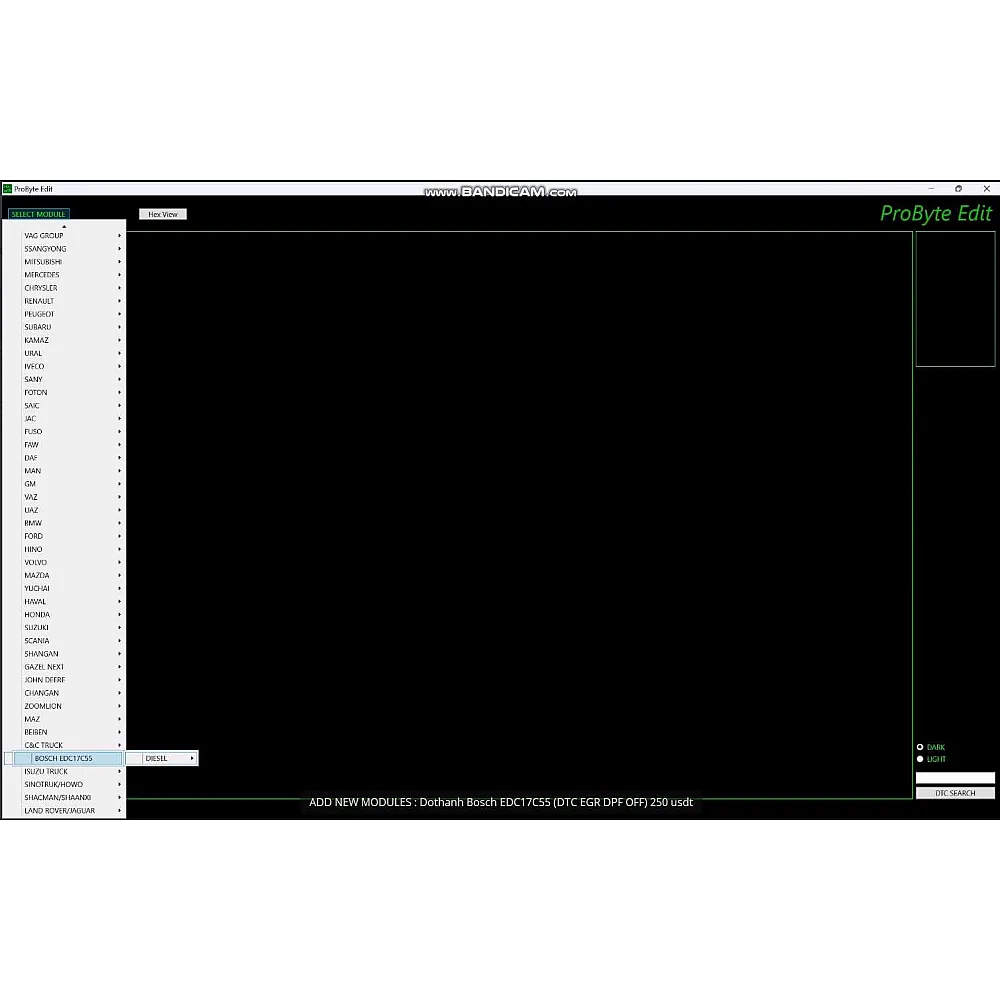 Probyte Edit Module ProByte FULL Dothanh Bosch EDC17C55 DTC EGR DPF off — это программное решение для настройки и оптимизации электронных систем управления двигателем. Подходит для работы с блоками управления Bosch EDC17C55. Позволяет отключать системы DTC, EGR и DPF, что может быть полезно при тюнинге или ремонте автомобиля. Продукт обеспечивает гибкость в настройке параметров двигателя и может использоваться профессионалами в автосервисах.