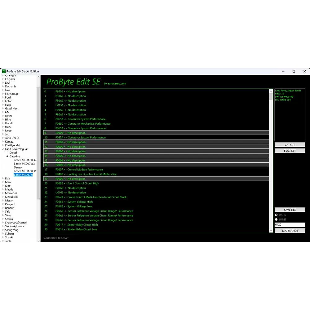 Probyte Edit Module ProByte FULL Land Rover/Jaguar Bosch MED17.0 CAT EGR EVAP off — это программное решение для настройки и модификации электронных систем управления в автомобилях Land Rover и Jaguar с блоком управления Bosch MED17.0. Модуль позволяет проводить деактивацию систем CAT, EGR и EVAP, что может улучшить работу двигателя и его характеристики. Подходит для профессионального использования в автосервисах и мастерских, специализирующихся на обслуживании данных марок автомобилей.