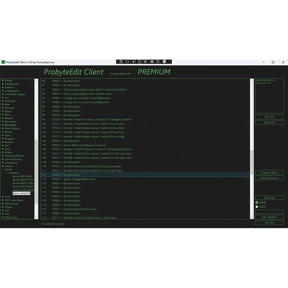 Лицензия Probyte Edit для Suzuki: решение проблем с Melco MH81XX, CAT, EVAP, EGR, DTC OFF